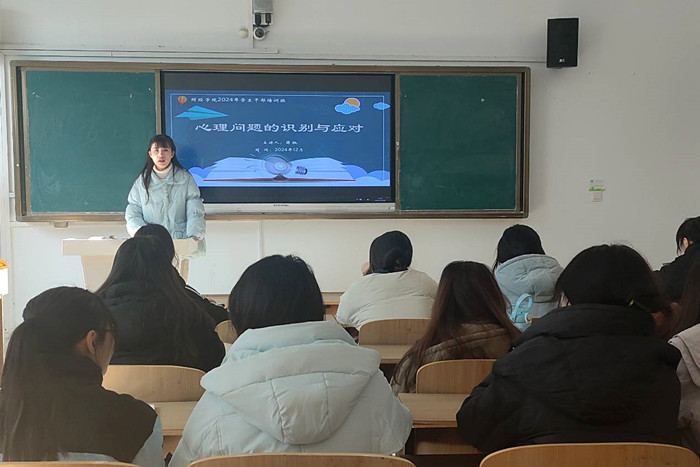 为帮助心理委员增强基础理论知识,提升心理健康工作能力,12月19日,财经学院在龙湖校区致知楼C101开展心理委员专题培训。培训由学院心理辅导老师薛枫主讲,学院全体班级心理委员参加。