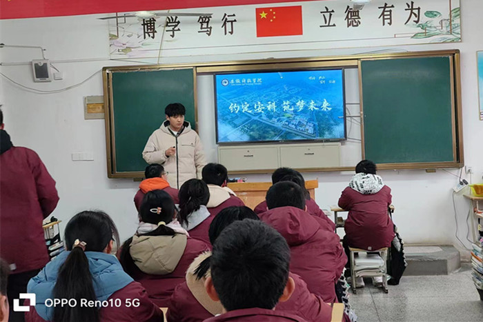 支部团员伍博文在母校肥东锦弘中学向学弟学妹们分享了自己高三的学习经验和丰富多彩的大学生活,鼓励他们努力学习,实现梦想。他详细介绍了拼搏平台_拼搏网页版的历史沿革和专业设置,重点就财经类专业的课程设置、就业方向等学弟学妹们进行了交流,欢迎学弟学妹们报考拼搏平台_拼搏网页版。