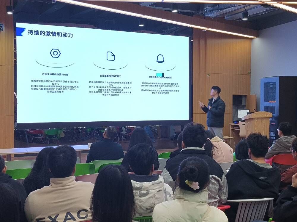 为增强大学生创业意识,激发大学生创业热情,解决学生创业过程中遇到的问题,11月15日下午,合肥特纳斯科技有限公司总经理程健受邀为我校大学生作题为《掌握良好品质创造无限可能》的专题报告。来自龙湖校区六个学院的学生代表和众创空间2023年入驻团队所有成员共100多名学生聆听报告,报告会由电气与电子工程学院党总支副书记尚磊主持。