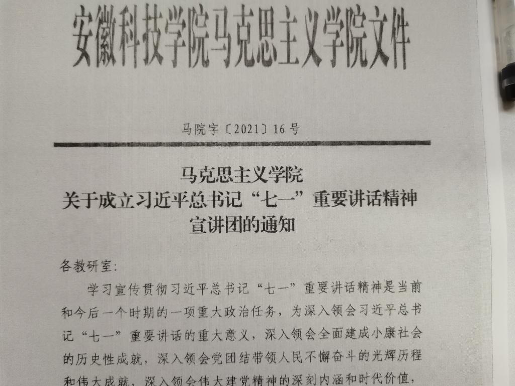 2021年7月30日马克思主义学院制定理论宣讲红头文件