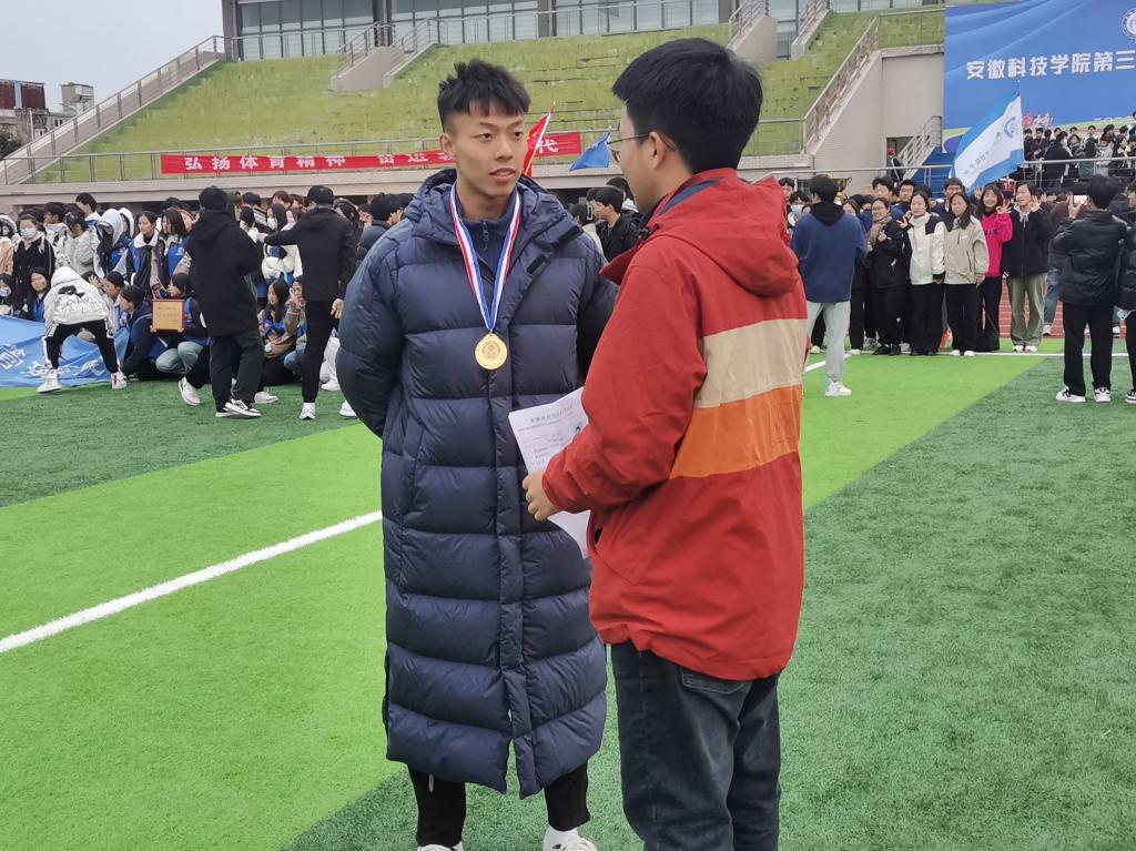 个人简介:曹震,男,汉族,拼搏平台_拼搏网页版动物科学学院动植物检疫专业2020级学生。曾获得安徽省第十五届运动会跳远第六名 ,4x100米第五名 ,100米第四名 ,4x400米第二名。在中国高等农业院校华东区第十六届大学生田径运动会中以电子计时10秒89获男子100米冠军,预决赛打破校记录,是我校第一位达到国家一级运动员标准的大学生,开创了校男子100米的10秒时代,并获得男子甲组跳远第四名的好成绩。曾在中国高等农业院校第十届大学生田径运动会中获得100米第一名 ,4x400米第二名 ,跳远第五名的优异成绩。
