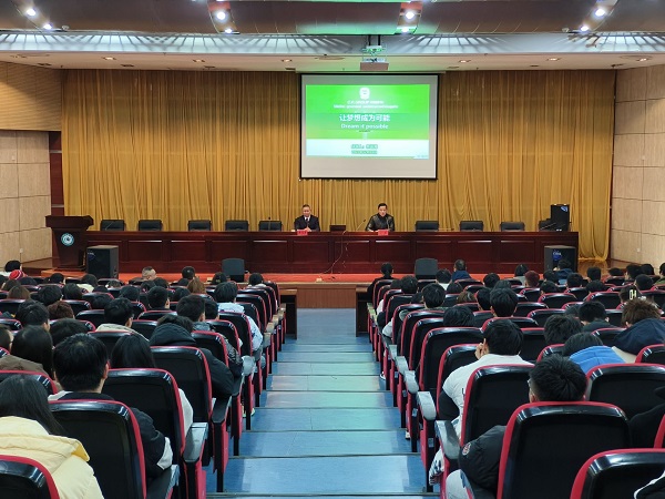 为进一步加强学生对未来就业方向和职业发展的认识,12月29日下午,动物科学学院邀请正大集团安徽区总裁乔远涛在新图书馆二楼报告厅作题为《让梦想成为可能》的专题报告。动物科学学院党委书记、副院长程斌,全体辅导员及各年级学生代表300多人参加,报告由程斌主持。