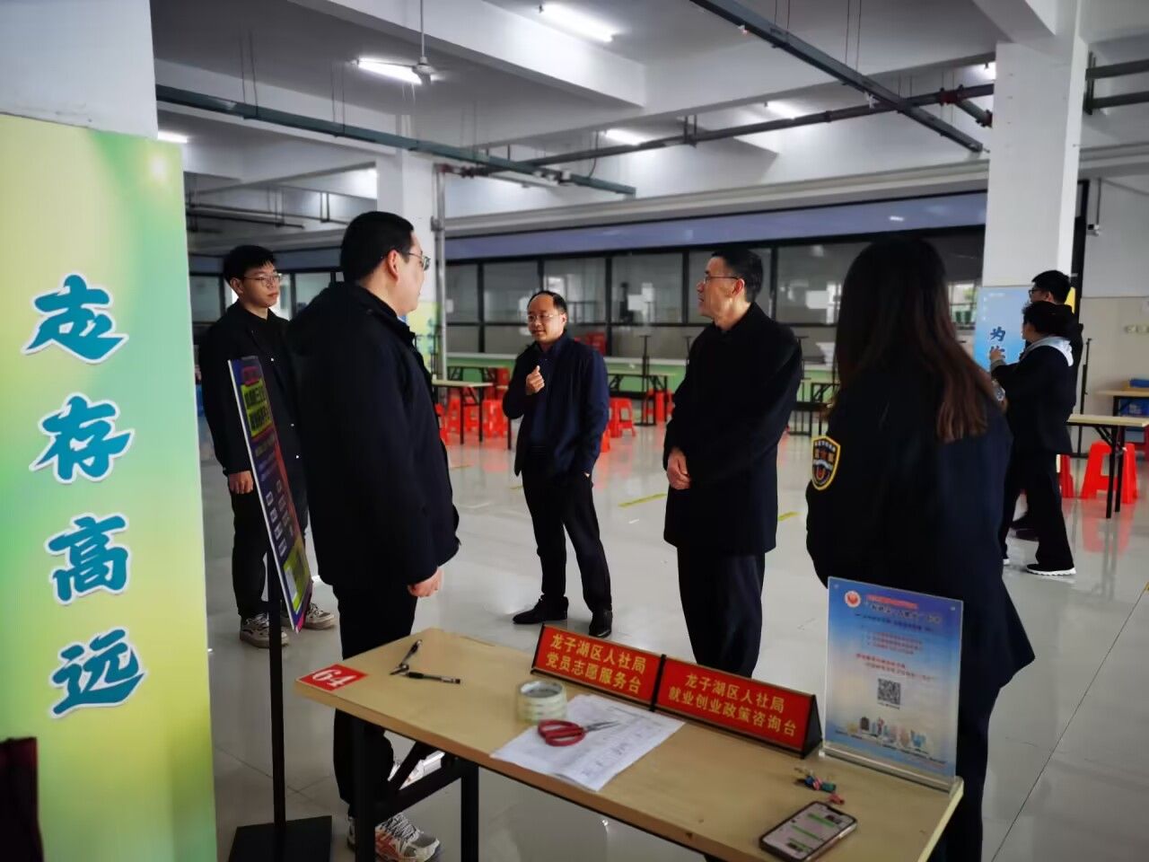 双选会开始前,电气与电子工程学院党委书记骆海邦,党委副书记、纪委书记尚磊深入双选会现场与用人单位洽谈交流,详细了解企业用人需求、工资待遇、行业发展趋势等情况,并与部分企业交流了后续访企拓岗相关事宜。