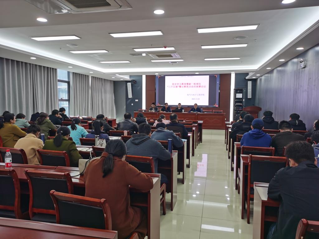 3月24日下午,电气与电子工程学院在综合信息中心西辅楼111报告厅召开党史学习教育暨新一轮深化“三个以案”警示教育及动员部署会议。党委书记骆海邦,党委副书记、副院长(主持工作)夏显明,党委副书记尚磊,副院长国海出席会议,学院全体教工党员及学生正式党员参与会议,会议由夏显明主持。