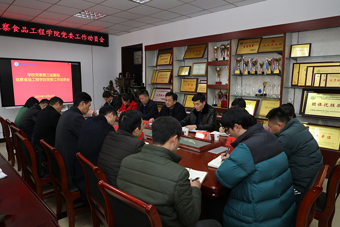 校党委巡察办有关同志,第三巡察组全体成员,食品工程学院领导班子成员出席会议,学院全体教职工及部分学生代表列席会议。