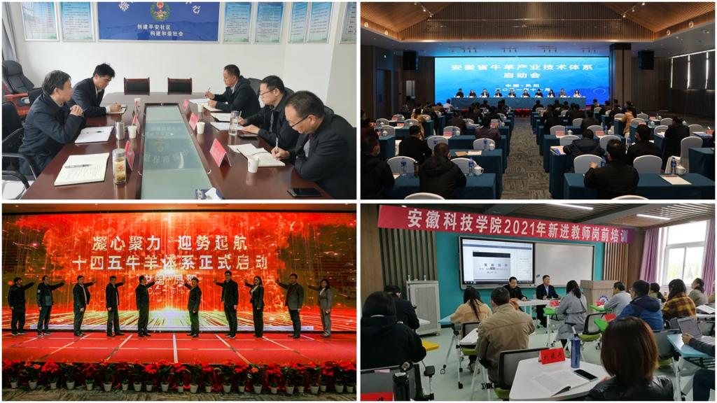 【综述】11月5日,校党委书记蒋德勤,党委委员、纪委书记、监察专员王强赴我校定点帮扶单位凤阳县枣巷镇黄咀村、黄湾乡吴窑村,亲切慰问选派干部,实地调研指导乡村振兴工作;11月5日至7日,安徽省秸秆和畜禽养殖废弃物综合利用产业技术体系启动会在安徽省凤阳县召开,启动会期间,开展了体系专业组组长工作汇报、体系试验站交流、专家任务书签字、综合试验站授牌等活动,与会代表参观考察了小岗村大包干纪念馆和小岗村现代生态农业研究所的试验田。校党委书记蒋德勤出席开幕式;11月13日,“十四五”安徽省牛羊产业技术体系启动仪式在安徽凤阳举行,来自全省的岗位专家、综合实验站站长,部分市县农业农村局领导及相关企业代表等共50余人参加仪式。省农业农村厅副厅长、一级巡视员杨增权,校党委书记蒋德勤,省农业农村厅科教处处长纵风云、畜牧处处长王明辉,全国人大代表、省畜牧技术推广总站站长张莉,省农业农村厅畜保中心许大双等领导和嘉宾出席启动仪式,校党委委员、副校长李升和主持仪式;10月至11月,我校组织开展2021年新进教师岗前培训工作,2021年新进专任教师、辅导员及管理人员共70余人参加了培训,岗前培训采取集中网络培训、校本培训和在线选修等形式进行。