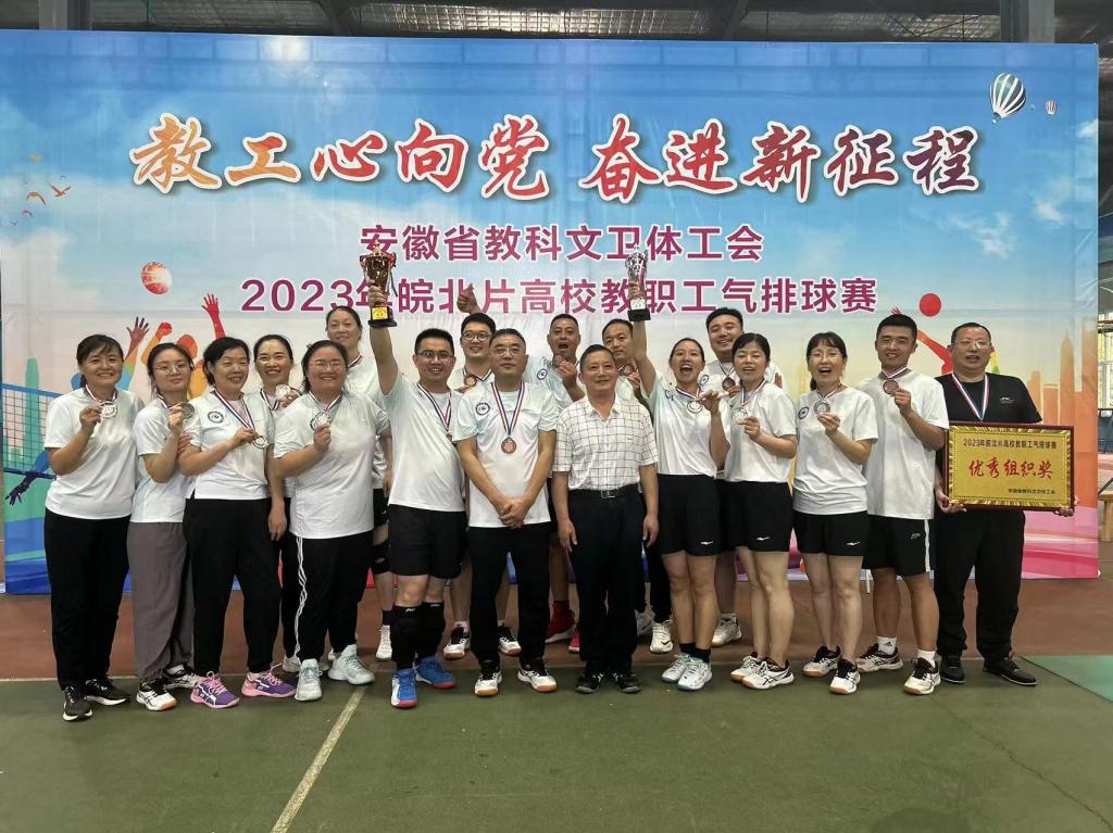 由安徽省教科文卫体工会主办,淮南师范学院承办的2023年皖北片高校教职工气排球赛,9月24日胜利闭幕本次气排球赛分男子组和女子组,共有皖北片10所高校,共计20支代表队参赛。经过二天的激烈、精彩的比赛我校教职工女子代表队斩获亚军我校教职工男子代表队荣获季军,我校是唯一女子和男子代表均获奖的参赛高校