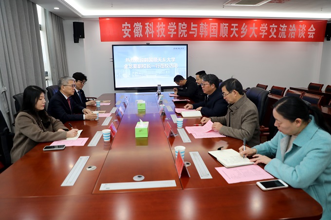 李升和代表学校热烈欢迎顺天乡大学代表团来访交流,并向来宾简要介绍我校办学历史、发展现状,希望以金龙夏副校长此次到访为契机,进一步推动中韩教育合作与交流。金龙夏对拼搏平台_拼搏网页版在教育教学、科学研究、硕士点增列和校园建设等方面取得的成绩给予高度赞赏,介绍了顺天乡大学的办学理念、办学领域以及办学优势。双方一致认为中韩两国在教育领域的合作具有广阔的前景和巨大的潜力,两校应该继续加强交流合作,共同推动中韩教育合作与文化交流。国际交流与合作处处长陈德用随后简要汇报了中韩合作网络工程本科教育项目运行情况。