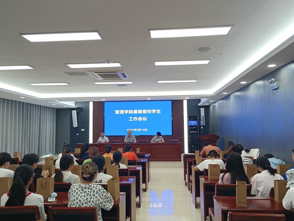 8月14日下午,管理学院在龙湖校区西辅楼111会议室召开暑期留校学生工作会议,学院党委书记丁景良、党委副书记陶漫及全体专兼职辅导员出席会议,全体留校学生参加会议,会议由党委委员、党政办公室主任李永鹏主持主持。