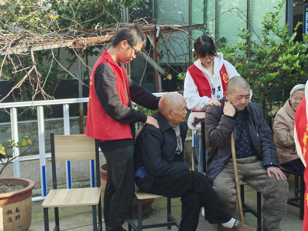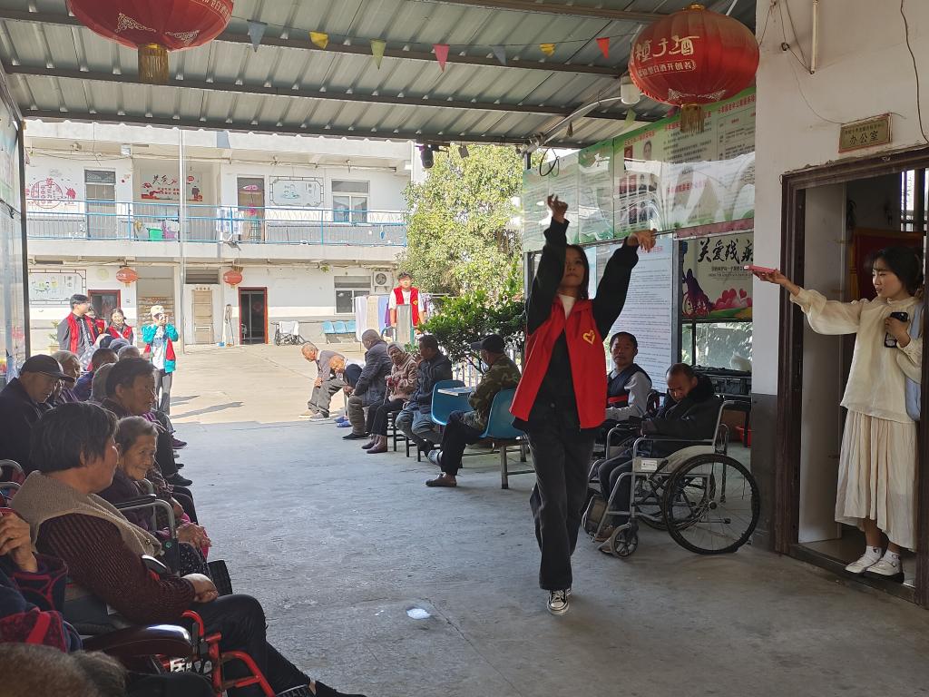 走进敬老院,大家看到的是一张张慈祥的笑脸。在学院团委前期联系对接下,老人们早已坐在两侧,笑意盈盈地等待大家的到来。志愿者们精心准备了魔术,戏腔表演,傣族舞等节目,让老人们通过欣赏文艺节目来愉悦身心,拉近了志愿者与老人之间的距离。接着,志愿者们开展各种志愿服务,有的陪老人聊天,有的协助行动不便的老人,到户外晒太阳,有的帮忙打扫社区卫生,当遇到行动不便的老人们,志愿者们就蹲着陪在他们身旁,一起唠生活,听着他们的生活趣事以及珍贵过往,一派其乐融融的场景。活动中,志愿者们看到年过半百的老人步履蹒跚,看到了老人们在这个年纪三五成群谈笑风生,也看到了身患疾病的老人仍然满怀希望向阳而生,大家干劲十足,尽心尽责,陪伴老人们度过了美好的一天。