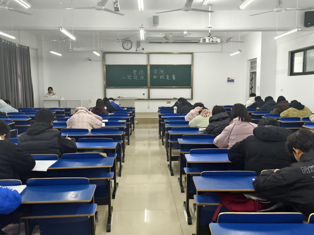 为丰富心理健康教育的内容,创新教育形式,提升广大学生的心理素质,助力同学们身心健康发展。根据学校和学院心理育人工作安排,12月4日下午,管理学院在尚行楼c201-204教室举办心理知识竞赛活动,本次竞赛旨在考验学生对心理学知识的掌握程度及其在实际生活中的应用能力。全院共有来自不同年级的23支队伍300余名学生参加比赛。