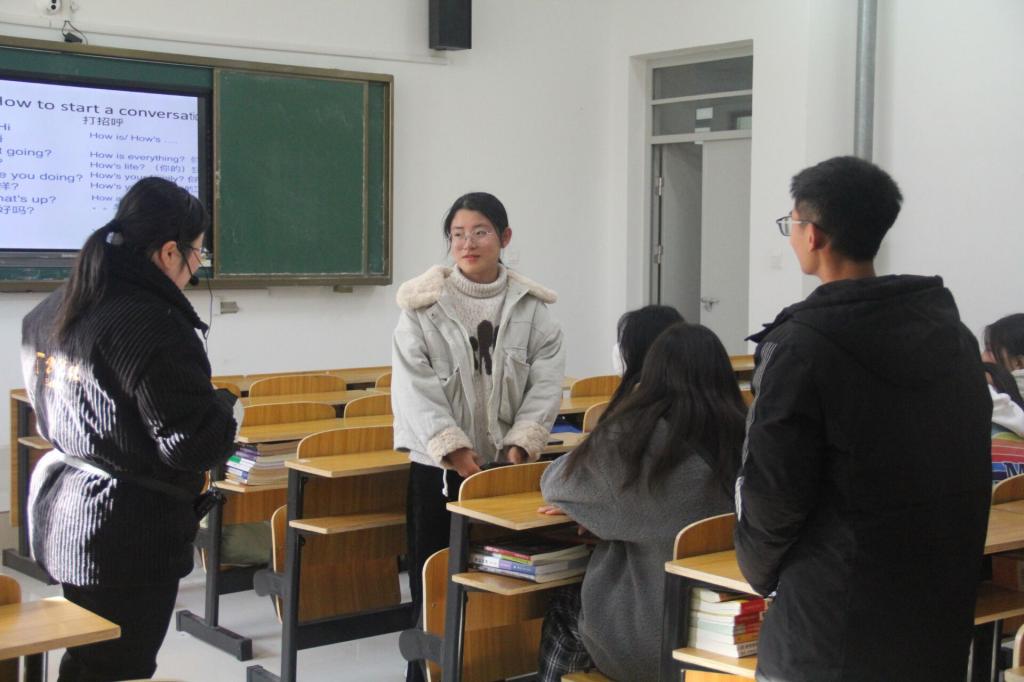随着上课铃声的响起,活动正式开始。老师首先邀请两名同学自评自己的英语水平和英语口语交流能力并借此给大家介绍英语口语知识和大家日常生活中运用口语的误区。接着在老师的带领下,同学们进行了一次“模拟与陌生人搭讪”游戏。交谈之初,同学们都不怎么开口,生怕自己的发音不准确或者有语法错误,但是经过老师的引导,大家逐渐适应进入状态,畅所欲言,积极地表达自己的观点。口语交流后,老师又给大家进行了口语小测验、英语文化了解等一系列小活动,同学们积极踊跃参与,现场洋溢着欢乐的气息。
