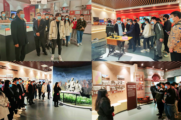 张严政、开金苗等带队老师一边参观展览,一边不时地给同学们讲述红军长征途中红三十四师长陈树湘宁死不屈“断肠明志”、红四团战士冒着倾盆大雨沿着崎岖陡峭的山路一昼夜急行军240里“分夺泸定桥”、沂蒙红嫂用乳汁救治八路军小战士、东北抗联“八女投江”、渡江战役踊跃支前奋力划桨的“背影小姑娘”、“全国脱贫攻坚楷模”“时代楷模”黄文秀等一个个感人至深的党史小故事;在淮海战役和渡江战役的展览橱窗前,张严政向现场同学重述了我们党和国家领导人对人民在推动历史进程中伟大作用的高度评价,“淮海战役的胜利是人民群众用小车推出来的”“渡江战役的胜利是靠老百姓用小船划出来的”,强调了中国共产党与人民群众的血肉联系和深情厚谊,并结合脱贫攻坚、疫情防控、乡村振兴和党的二十大报告提出的新时代新征程中国共产党的使命任务,重点阐述中国共产党“坚持以人民为中心的发展思想 ”的执政理念,要求全体党员同学牢记习近平总书记“务必不忘初心、牢记使命,务必谦虚谨慎、艰苦奋斗,务必敢于斗争、善于斗争”的殷殷嘱托,勤奋学习知识,练就过硬本领,报效祖国人民,在实践中学习宣传贯彻党的二十大精神。