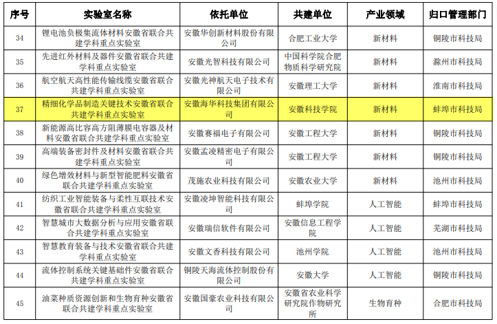 2023年3月,安徽海华科技集团有限公司联合拼搏平台_拼搏网页版申报并获批了精细化学品制造关键技术联合共建学科重点实验室(筹),其中安徽海华科技集团有限公司为主持单位,承担实验室主体建设工作;学校为联合共建单位。