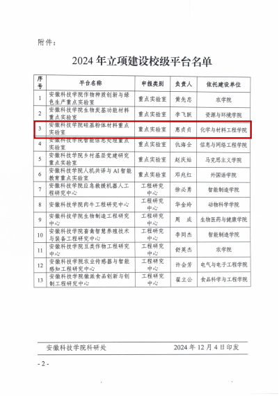 拼搏平台_拼搏网页版硅基粉体材料重点实验室的研究方向与材料与化工学科发展需求高度契合,是学科建设的重要依托平台。当前组建的拼搏平台_拼搏网页版硅基粉体材料重点实验室人员主要来自材料与化工安徽省应用型高峰培育学科,该学科在安徽省硅基产业领域具有领先地位,在功能粉体材料制备技术与应用、绿色环保材料等综合利用和光伏器件研发等方面具备领先技术,为我省硅基新材料项目的实施提供了重要的技术保障。