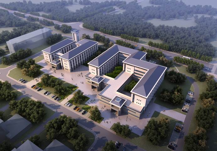 尚行楼平面布置采用“回”字形,呈现出建筑内外两个空间上的连续,并且解决自身采光和功能上的布置,营造“时间容器的精神空间”理念,在人文、自然、传统、和谐的主题下,强调创造崭新的精神空间。立面采用中式新古典风格,建筑庄重典雅又充满活力,建筑立面底部主要采用中灰色干挂花岗岩,中部及顶部采用浅灰色和中灰色的真石漆,既保证了经济性又不失细腻的质感变化。
