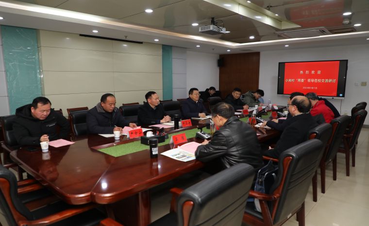 为进一步巩固拓展校地协同育人成果,深化与小岗村战略合作,持续推动驻村各项目组及相关单位工作任务落实,3月1日下午,我校在凤阳校区图书馆9楼会议室召开与凤阳县小岗村战略合作研讨交流座谈会。校党委书记时伟出席会议并讲话,校党委委员、副院长王孝义主持会议,凤阳县小岗村“两委”领导李锦柱一行和驻村各项目组及相关单位负责人参加会议。