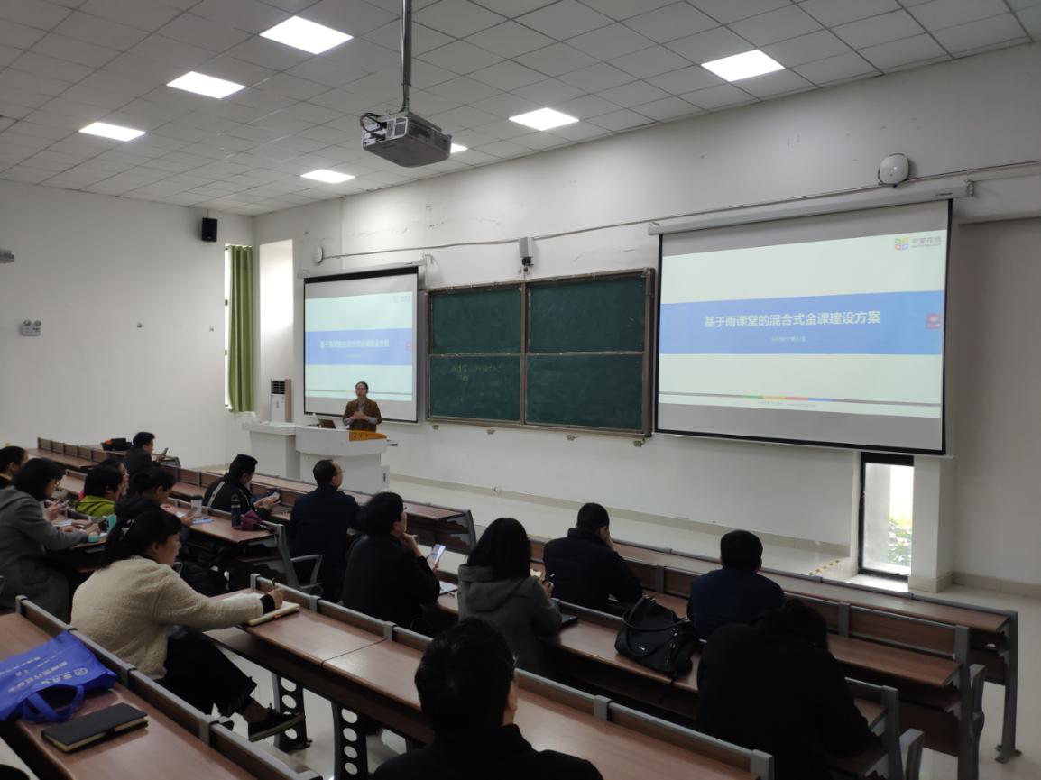为推广“长江雨课堂”在教学场景中广泛应用,提升教师信息化教学能力,全面推进信息技术和智能技术深度融入教育教学全过程,2021年3月31日教务处邀请“长江雨课堂”高级培训师刘鹏和张利楠,在凤阳校区和龙湖校区结合线上直播,开展同步培训,全校100余位教师参加此次培训。