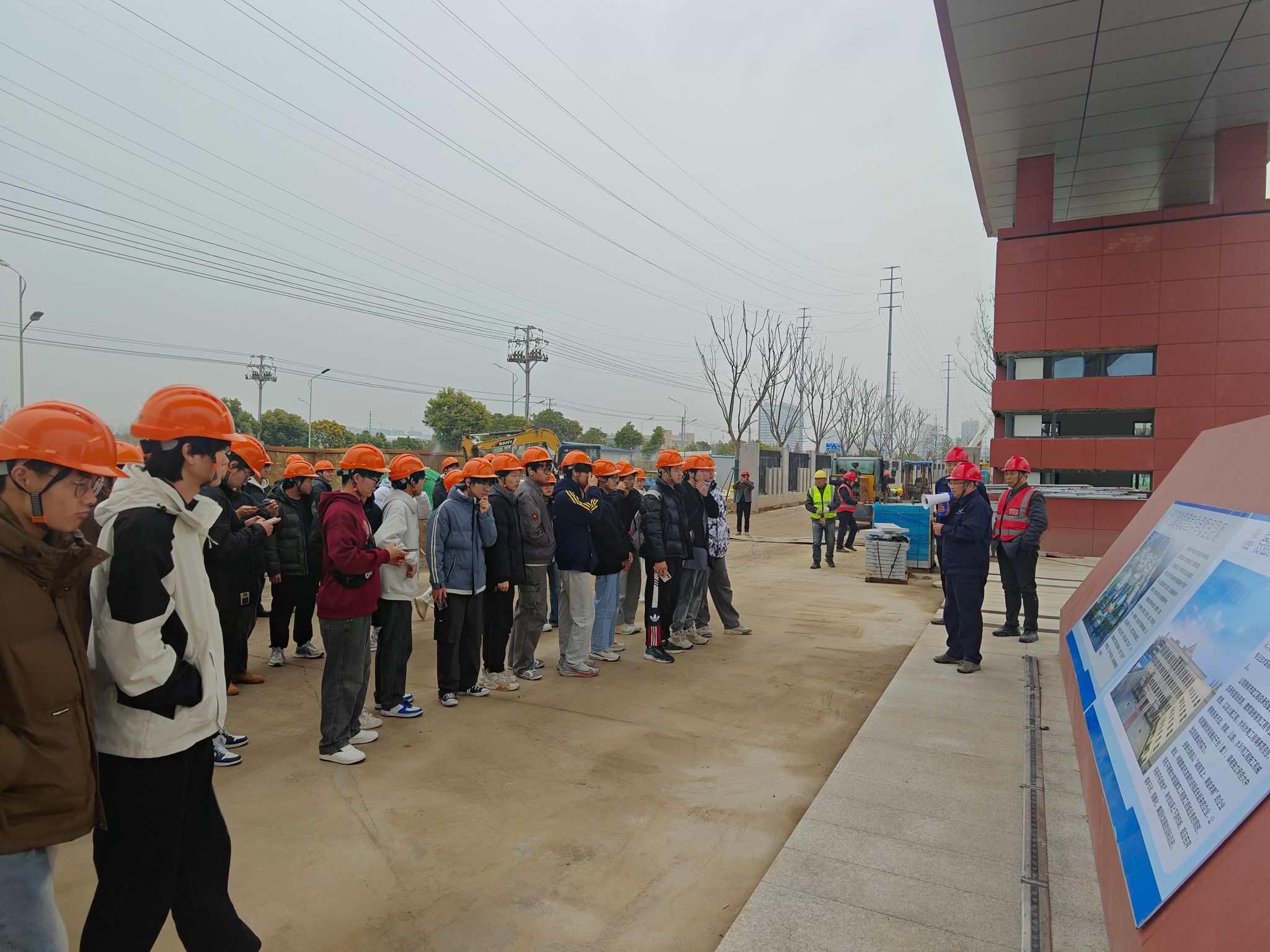 12月4日下午,建筑学院土木工程教研室马露、常山、程希莹和孙赑4位教师,带领2023级土木工程专业96名学生共赴安徽元鼎建设工程有限公司承建的蚌埠三中(新校区)工地,开展土木工程专业认知实习交流活动,实地观摩装配式建筑施工。安徽元鼎建设工程有限公司总工程师张志坚等热情接待,并给参观师生介绍了工程的相关情况。