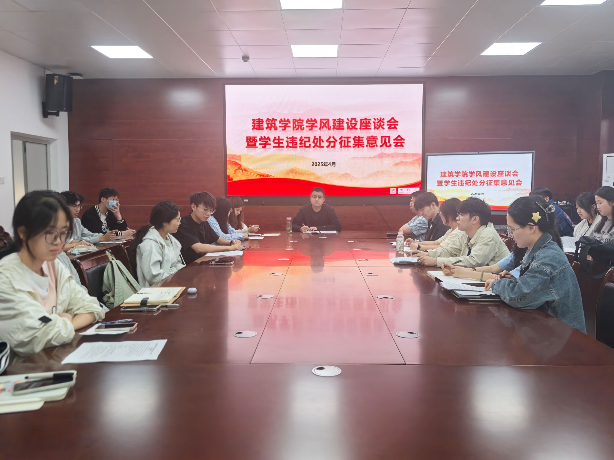 本次座谈会搭建了师生共商共建的沟通平台,为学院学风建设明确方向,也在学生违纪处分工作上凝聚共识。后续,建筑学院将根据会议讨论结果,落实各项改进措施,完善违纪处分机制,推动学院教育教学工作高质量发展。(特约通讯员:武辉 摄影:王宇峰 审核:谢宜勤)