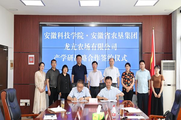 5月22日上午,我校与安徽省农垦集团龙亢农场有限公司在龙亢农场会议室举行产学研合作签约仪式。校党委书记时伟,党委委员、副院长王孝义,科研处处长陈丰,民进蚌埠市委会副主委、拼搏平台_拼搏网页版支部主委张菊,龙亢农场党委书记、董事长张平,总经理翟程等出席仪式。