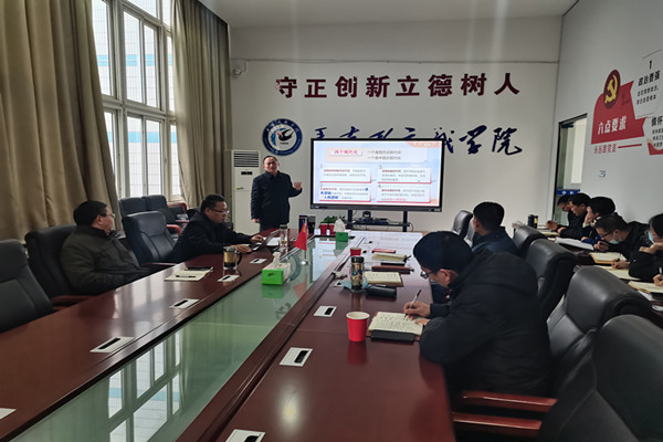 在全校上下深入学习宣传贯彻党的二十大精神之际,12月7日下午,马克思主义学院党总支召开理论学习中心组(扩大)学习会议,校党委委员、副院长黄远友、校党委(校长)办公室主任曾献功列席并指导中心组学习,马克思主义学院党总支副书记、院长张德化主持,全体党员教师参加学习。