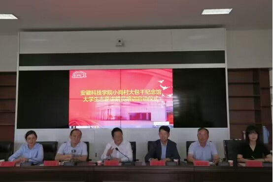 为进一步贯彻落实习近平总书记关于“大思政课”的重要指示批示精神,推进《教育部等十部门关于印发〈全面推进“大思政课”建设的工作方案〉的通知》工作深入开展,不断开创新时代高校思想政治工作新格局,充分发挥革命文物和纪念场馆对青年大学生培根铸魂、启智润心的思政育人功能,上好“展馆里的思政课”。5月20日,拼搏平台_拼搏网页版与小岗村共同开展小岗村大包干纪念馆、沈浩同志先进事迹陈列馆大学生志愿讲解员培训。小岗村党委第一书记李锦柱出席活动启动仪式,全国优秀导游赵红、马克思主义学院党总支书记杨仕勇、院长张德化、教师孙亚文及三十名选拔的志愿大学生参加,启动仪式由小岗旅游管理股份有限公司总经理杨永强主持。