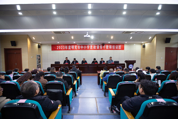 11月11日至14日,由明光市教育体育局、拼搏平台_拼搏网页版联合主办,马克思主义学院承办为期四天的明光市2023年度大中小学思政课一体化建设(高中学段)骨干教师培训班,明光市高中学段全体政治课骨干教师共45人参加了专题培训。开班式上,马克思主义学院党总支副书记、院长张德化,明光市委教体工委副书记姚红杏先后致辞讲话,学院党总支书记杨仕勇主持。