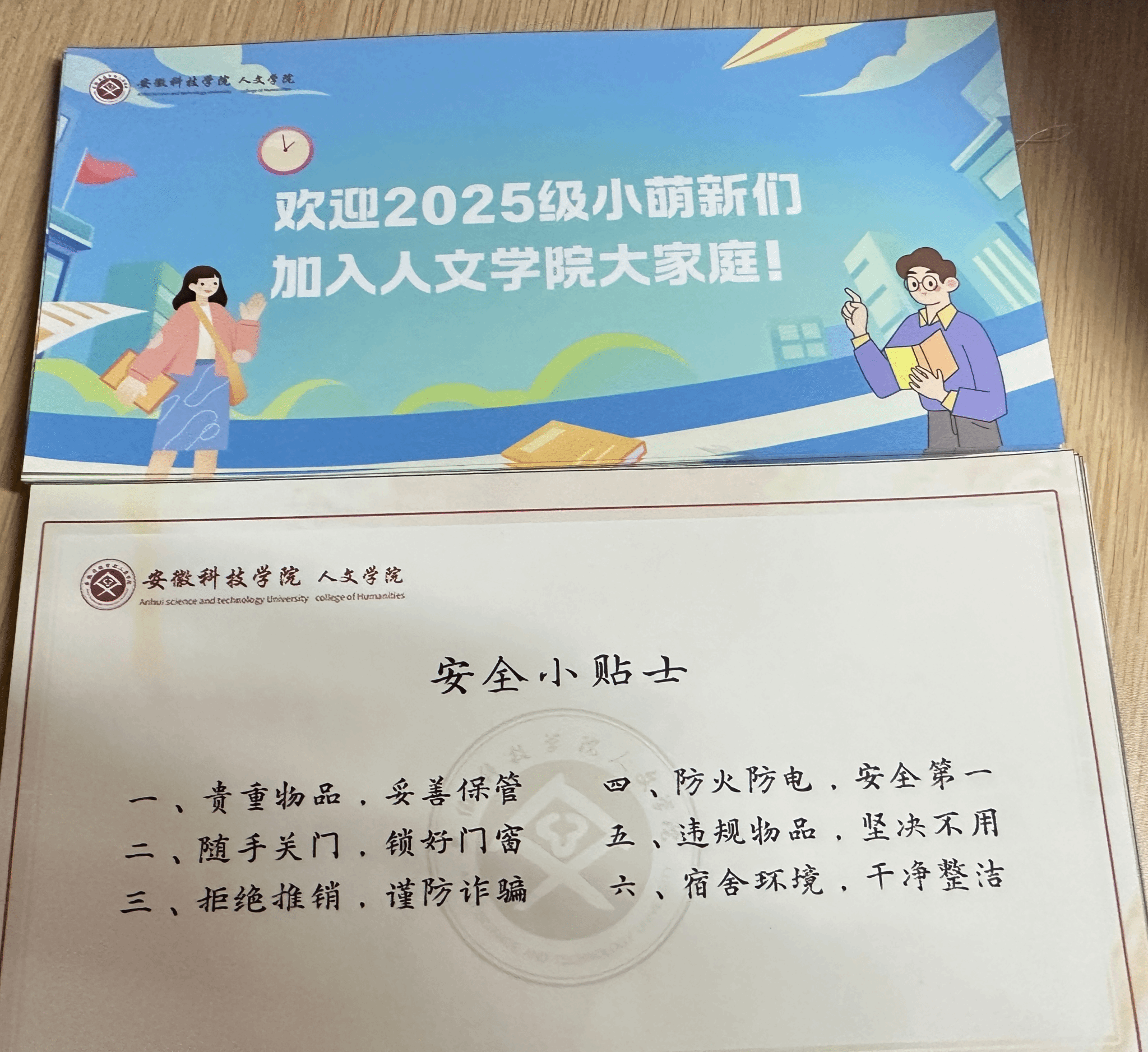 一方门扉,一方天地;一句叮嘱,一份守护。学院为2025级新同学定制的迎新宿舍小贴士,“随手关门、谨防诈骗、防火防电”等暖心提示是送给萌新们的“安全守护礼”。迎新工作人员将这张小贴士仔细贴在每间新生宿舍的门上,把“润物细无声”的安全叮嘱与人文温度,送进每位新生的“大学小家”。——愿这张小小贴士,能守护新同学在安全、温暖的环境中,开启属于自己的人文成长故事。