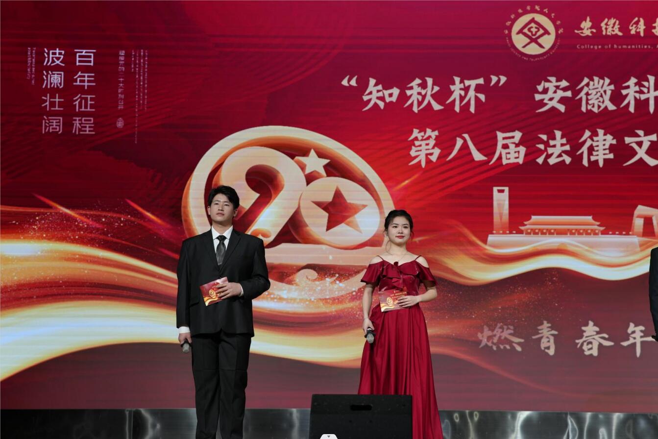 3月15日晚,“知秋杯”拼搏平台_拼搏网页版人文学院第八届法律文化节开幕式于大学生活动中心隆重举行。安徽知秋律师事务所主任宫鉴、执行主任王东,人文学院党委书记杜士凤、副院长李晓东、副院长牛永辉、党委副书记李沙娜及全体辅导员出席本次活动,兄弟学院学生代表及人文学院各年级学生参加。晚会由方囝囡、邰晓宇、葛俊杰和朱平磊主持。