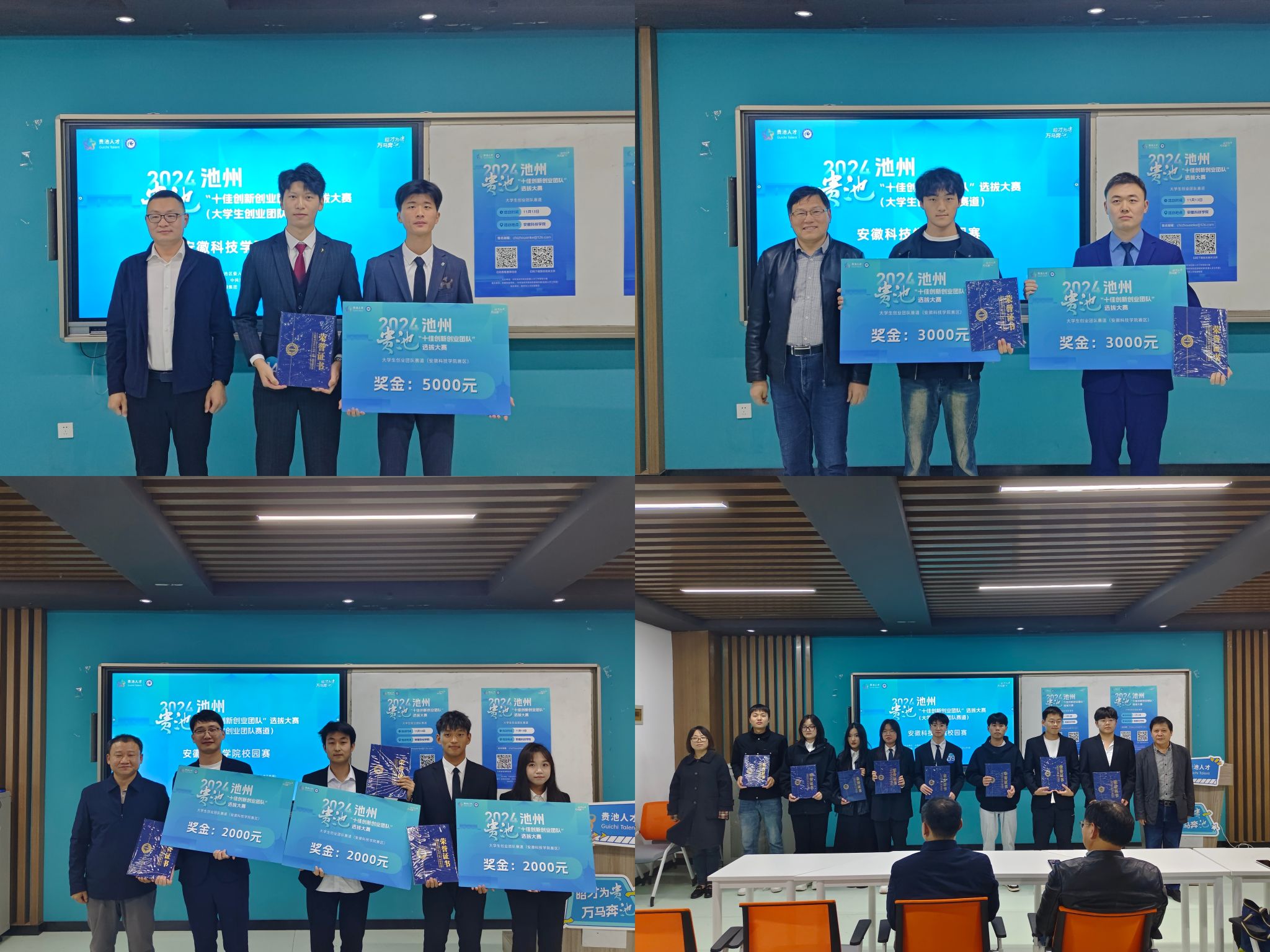 11月13日下午,池州·贵池“十佳创新创业团队”选拔大赛拼搏平台_拼搏网页版校园赛决赛在凤阳校区落下帷幕。此次大赛由中共池州市贵池区委人才工作领导小组主办,校赛由生命与健康科学学院承办。池州市贵池区委组织部副部长张兆军,贵池区委人才工作领导小组办公室专职副主任钱伟伟,教务处副处长、创新创业学院副院长高青海,生命与健康科学学院副院长(主持工作)钱立生等出席决赛并为参赛团队颁奖。