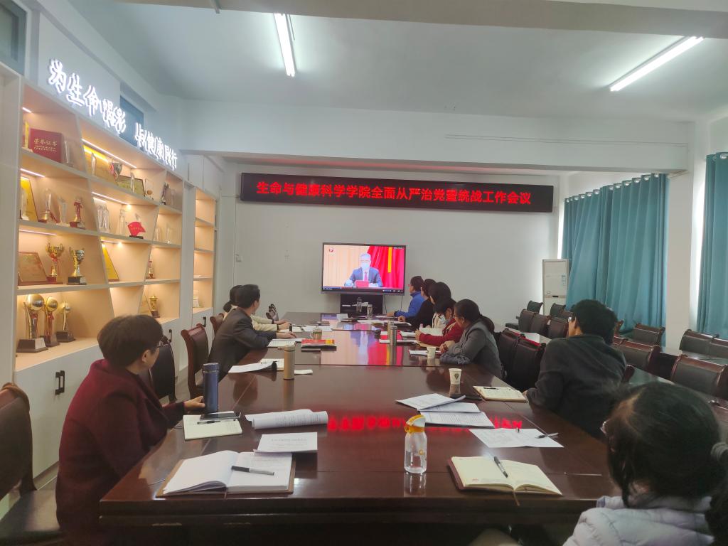 3月30日下午,生命与健康科学学院在学院会议室召开全面从严治党暨统战工作会议,学院党政领导、党委委员、党支部书记、纪委委员及党外知识分子参加会议,会议由学院党委书记詹学文主持。