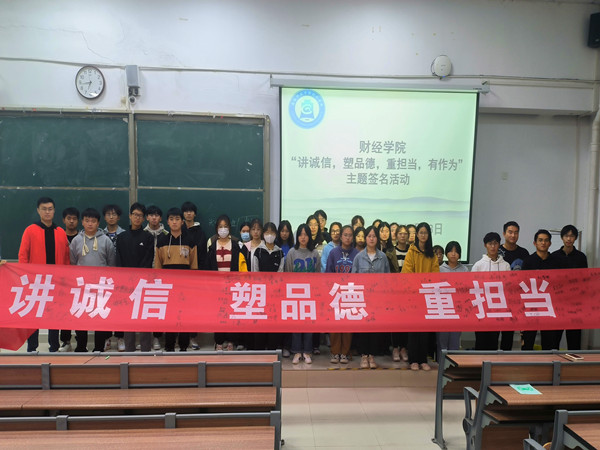 财经学院新生入学教育之十八:开展“立规矩、塑品德、重担当、有作为”主题教育签名活动