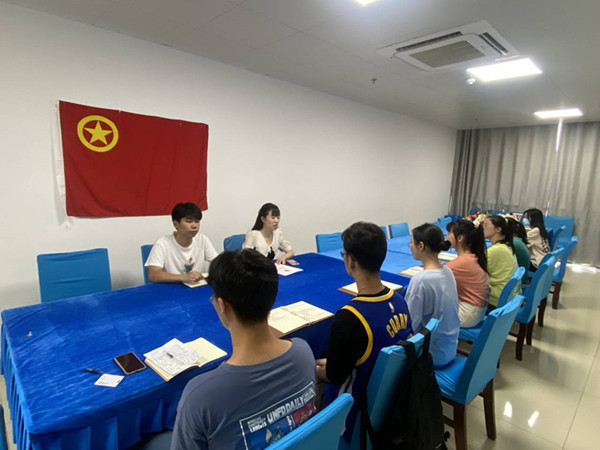 “我志愿加入中国共产主义青年团,坚决拥护中国共产党的领导,遵守团的章程,执行团的决议,履行团员义务,严守团的纪律,勤奋学习,积极工作,吃苦在前,享受在后,为共产主义事业而奋斗。”面对鲜红的团旗,新团员们在院团委学生委员、金融工程202班团支书赵博闻带领下面向团旗,庄严宣誓。