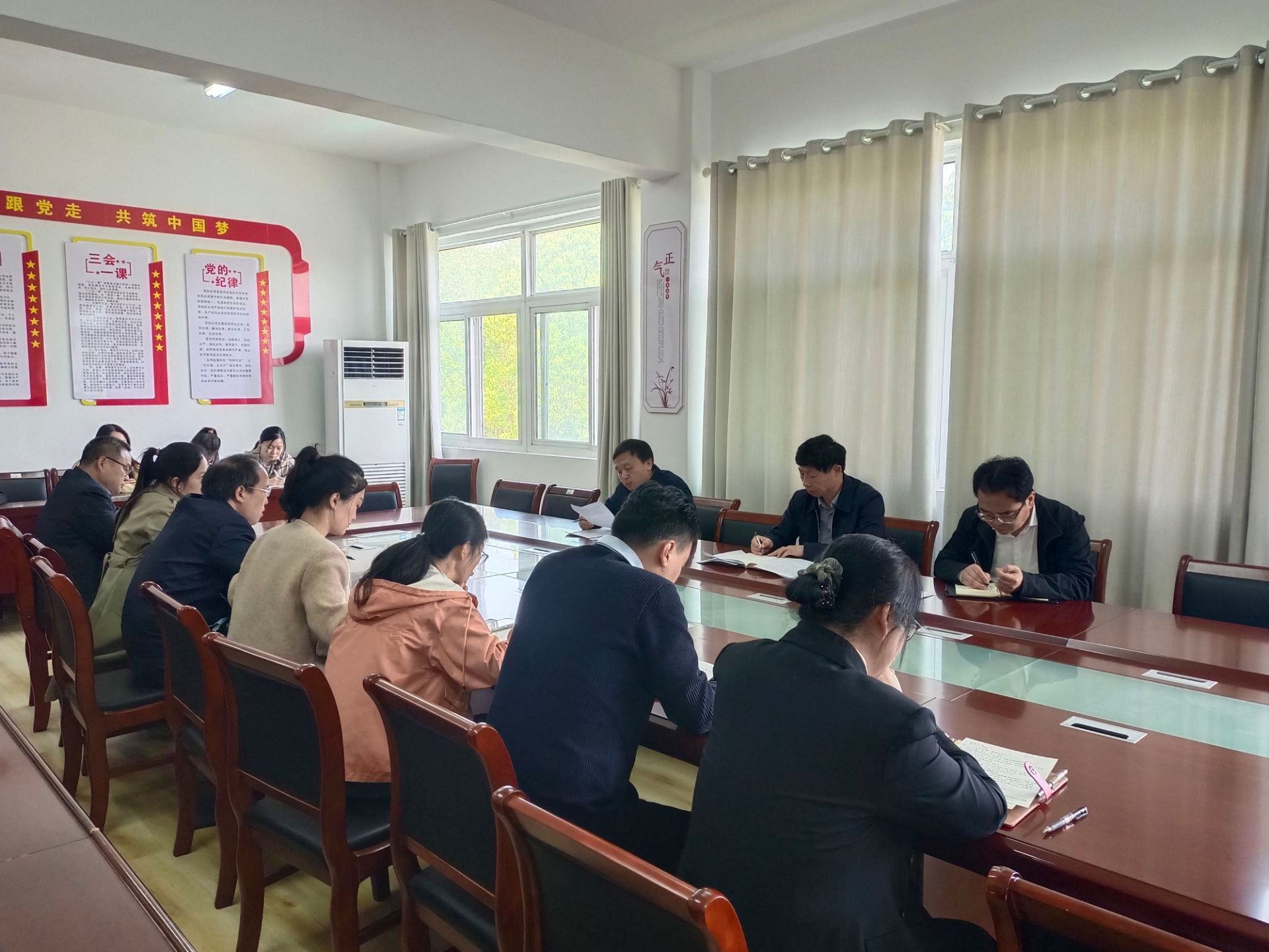 4月18日上午,根据学校党委关于开展党纪学习教育统一部署和人文学院党委《关于组织全体党员集中研读<中国共产党纪律处分条例>条文的通知》(以下简称《条例》),人文学院中文系教工党支部在学知楼324党员活动室召开党纪学习教育专题学习会,校党委书记时伟到会指导。人文学院中文系教工党支部和汉语言文学专业学生党支部全体党员参加,法学系教工党支部书记、系主任张晓云列席。会议由中文系教工党支部书记和建伟主持。