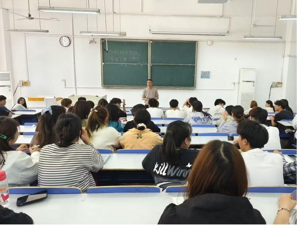 4月26日中午,动物科学学院于求知楼A106召开学生干部工作会议,旨在进一步加强学生干部的管理与培养,促进他们更好地履行工作职责,发挥榜样作用,为学院的发展和学生的成长作出贡献。动物科学学院全体非毕业班班长、团支书、学委参加本次会议。会议由学院党委副书记汤帅主持。