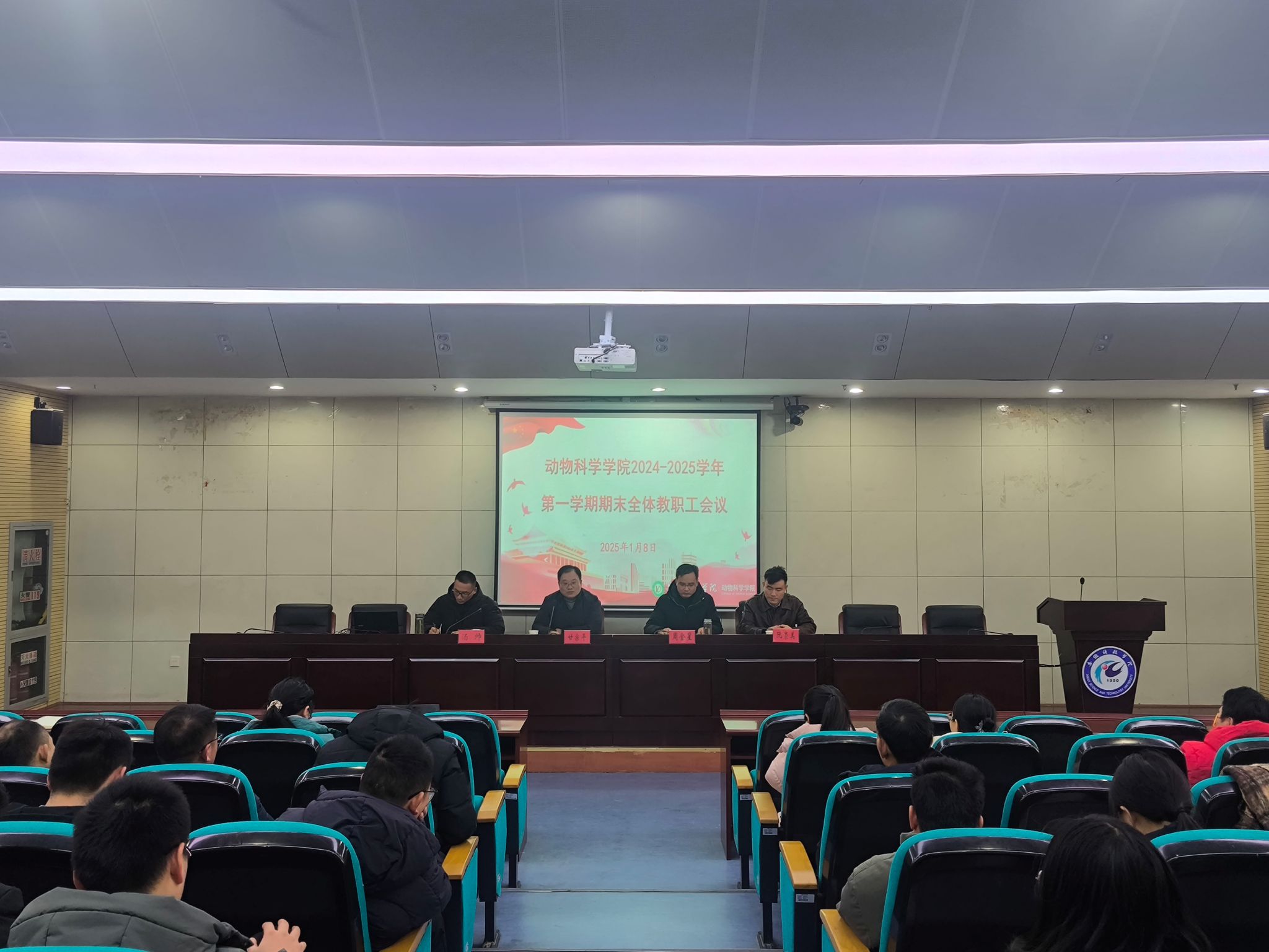1月8日,动物科学学院在会议中心一楼报告厅组织召开期末全体教职工大会。学院党政班子成员和全体教职工参加会议。会议由学院党委书记甘宗平主持。