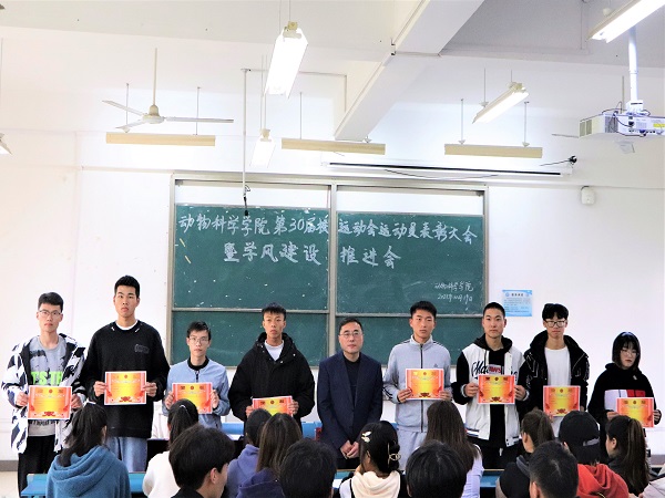 李焱宣读《关于给予参加拼搏平台_拼搏网页版第三十届田径运动会学生运动员通报表扬的决定》,胡文丽宣读获得校第30届田径运动会动物科学学院优秀运动员学生名单,动医192班赵虎代表运动员发言。大会集中表彰了动物科学学院在学校第三十届田径运动会取得佳绩的学生运动员。(特约通讯员:胡文丽 摄影:毕溢文 审核:汤帅)