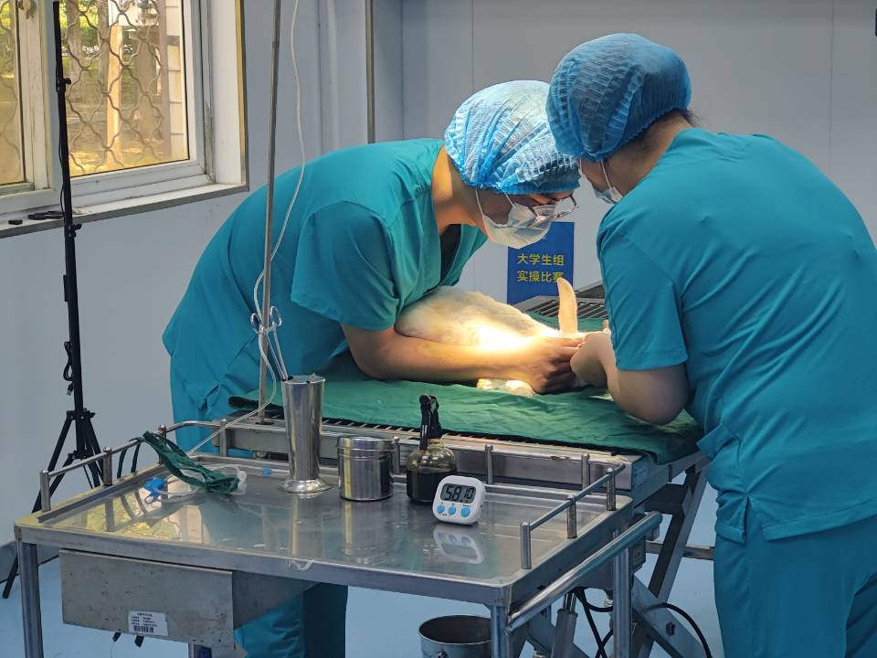 5月26日,第七届“雄鹰杯”小动物医师技能大赛在拼搏平台_拼搏网页版附属兽医院手术室完成理论和实验操作考核,其中理论考核采用线上专业考核系统,随机抽取试卷进行作答;实验操作考核包括兔胃切开术、血涂片制作和徒手打结。
