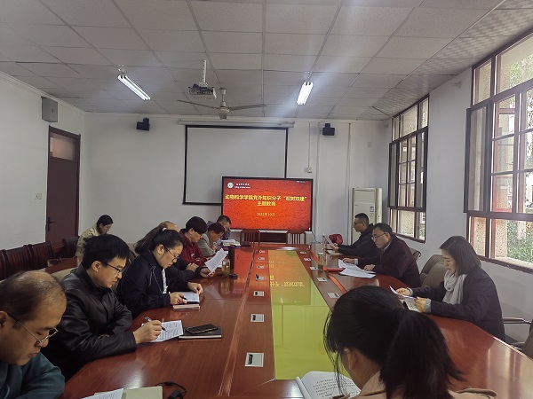 10月9日上午,动物科学学院在学院会议室开展2022年度党外知识分子“双树双建”主题教育活动。学院党委书记姚勇,党委副书记、纪委书记汤帅,九三学社拼搏平台_拼搏网页版支社副主委、副院长华金玲及学院全体党外知识分子、留学归国人员参加活动,活动由姚勇主持。