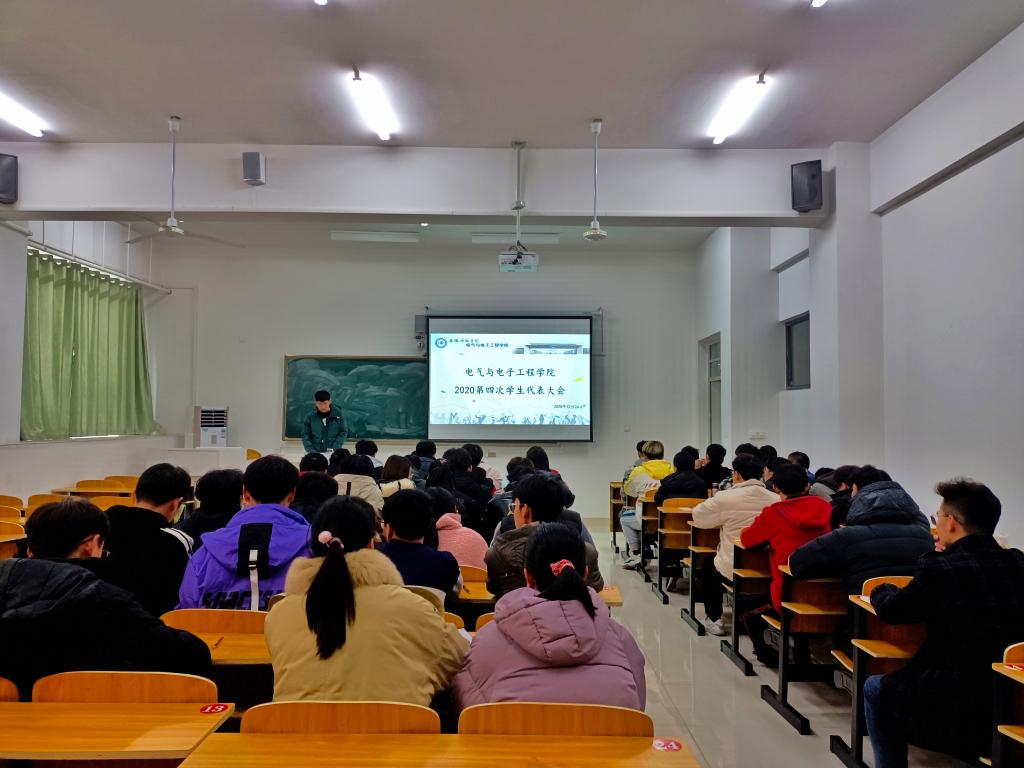 12月24日,电气与电子工程学院于致知楼B106召开第四次学生代表大会。本次大会主要选举出第四届学生会委员及出席拼搏平台_拼搏网页版2020年学生代表大会代表的成员。电气与电子工程学院党委秘书、团委副书记王延丽,院学生会主席黄世伟及学生会全体成员一同参加本次会议。
