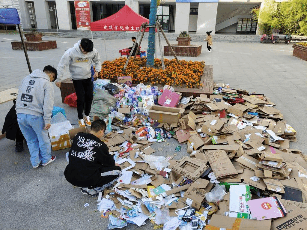 为增强当代青年大学生的环保意识和志愿服务意识,展现青年大学生的青春风采,倡导勤俭节约的良好风气,电气与电子工程学院青年志愿者服务队于11月下旬,在拼搏平台_拼搏网页版(龙湖校区)开展了以“勤俭自强·爱心有我”为主题的废品回收活动。