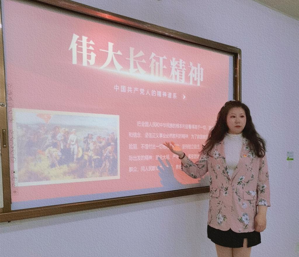 活动中,方辛为同学们讲了一堂《中国共产党人的精神谱系之长征精神》的微党课。她讲解了长征精神的丰富内涵、弘扬伟大长征精神的重要意义,且声情并茂讲述了长征中的经典战例——四渡赤水。这场战役首次完美地诠释了毛泽东运动战军事思想。同学们都听得津津有味,受益匪浅。方辛强调,在实现中华民族伟大复兴的新长征路上,我们还有许多“雪山”、“草地”需要跨越,还有许多“娄山关”、“腊子口”需要征服,一切贪图安逸、不愿继续艰苦奋斗的想法都是不能要的,一切骄傲自满、不愿继续开拓前进的想法也是不能要的,青年大学生尤其是大学生党员要多学习、多磨砺、多担当、多奉献,走稳走好新时代的长征路。