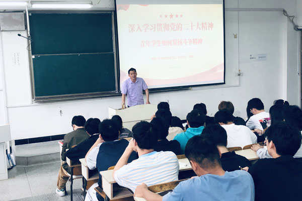 为深入学习贯彻党的二十大精神,教育引导青年学生坚定理想信念,发扬斗争精神,敢于斗争、善于斗争,改进学生干部自身作风,提高解决实际问题本领,助力学生健康成长成才,根据机械工程学院主题教育总体安排,2023年5月24日下午,学院党委副书记张程在求知楼A203教室为部分专业学生党员和入党及积极分子讲授“青年学生如何发扬斗争精神”主题党课。