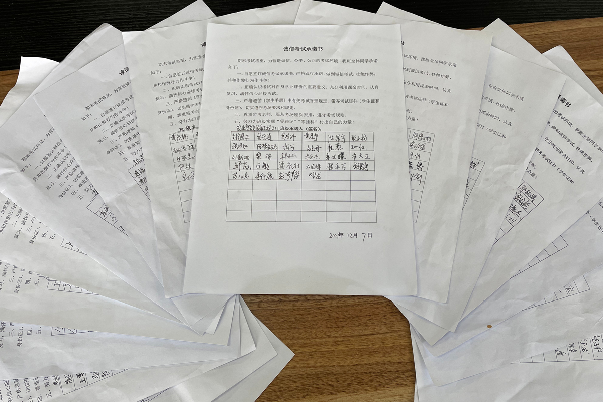 会后,各班陆续开展期末考风考纪及学生法治素养提升教育主题班会活动,同时以班级为单位签署了“诚信考试承诺书”,并要求广大同学积极践行承诺,为进一步营造守法守纪守规的良好氛围贡献自己的力量。