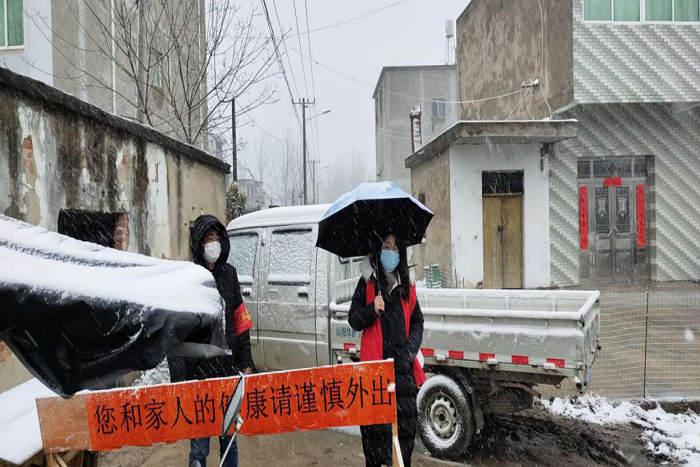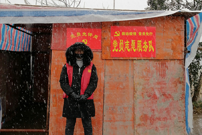 (王悦在风雪中坚守)
