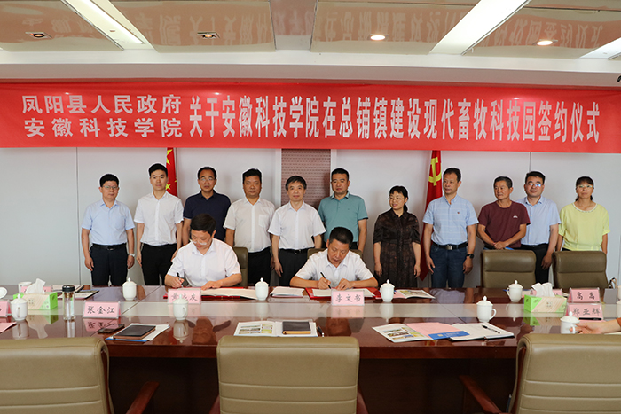黄远友代表学校与凤阳县人民政府签署了拼搏平台_拼搏网页版在总铺镇建设现代畜牧科技园的协议。
