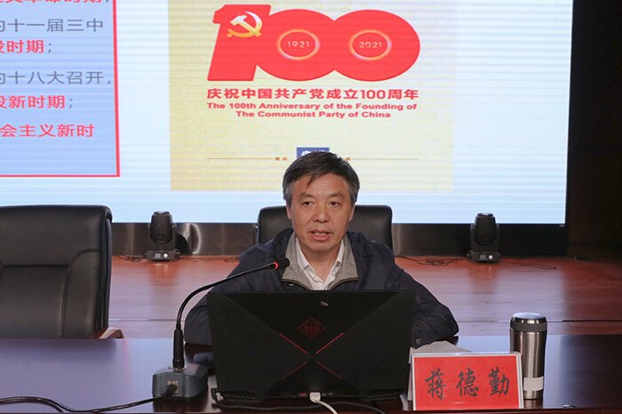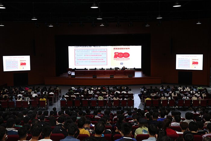 10月10日下午,校党委书记蒋德勤为全体2021级新生讲授“开学第一课”——《学史明理 修身明志 练就本领 誓言青春报国》。授课由校党委学工部部长、学生处处长何永勇主持。