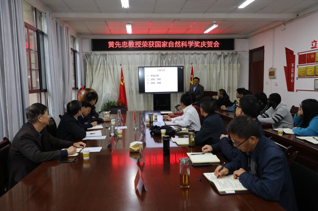蒋德勤首先代表学校党委、行政对黄先忠教授获得国家自然科学奖二等奖表示祝贺,高度评价获奖项目团队,认为这是项目团队勤勉努力、热衷科研、充满报国理想并付之行动的结果。蒋德勤回顾了黄先忠教授来校工作的三年间,在教学、科研和担任作物学学科带头人等方面所做的工作,认为黄先忠教授专注学术、治学严谨、工作投入、敢于担当、为人师表,是全校教职员工的楷模。他希望黄先忠及其团队继续凝神聚力做科研,积极开展农业科技创新,为学校事业发展做出新的贡献。同时希望学校相关部门、农学院进一步支持团队和作物学学科发展。