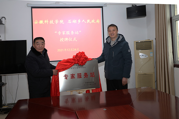 12月24日上午,“安徽省牛羊产业技术体系 九三学社拼搏平台_拼搏网页版支社专家服务站”揭牌仪式在固镇县石湖乡人民政府三楼会议室举行。校党委宣传(统战)部副部长、团委书记黄立义,九三学社拼搏平台_拼搏网页版支社主委程郁昕,安徽省牛羊产业技术体系首席专家、动物科学学院副院长华金玲,固镇县石湖乡党委书记王贡献,乡长曹怀龙,固镇县汉邦牧业有限公司董事长徐淼等出席揭牌活动。仪式由石湖乡人大主席殷献利主持。